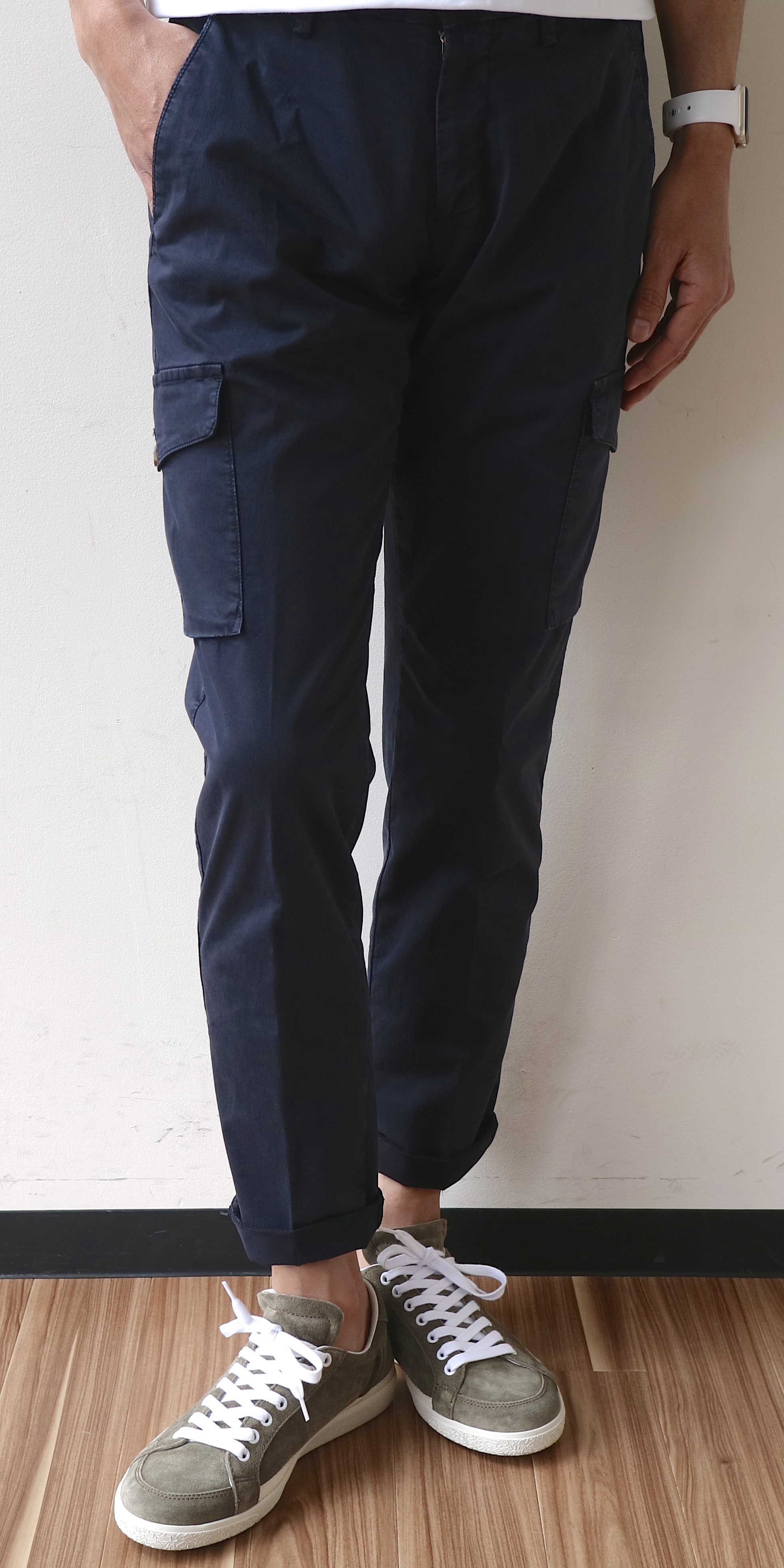 上品な雰囲気で穿けそうなネイビーのカーゴパンツは、パンツ専業ファクトリーの【BRIGLIA 1949/ブリリア】から。昨日入荷したばかりですが、その雰囲気の良さに早速の登場です。