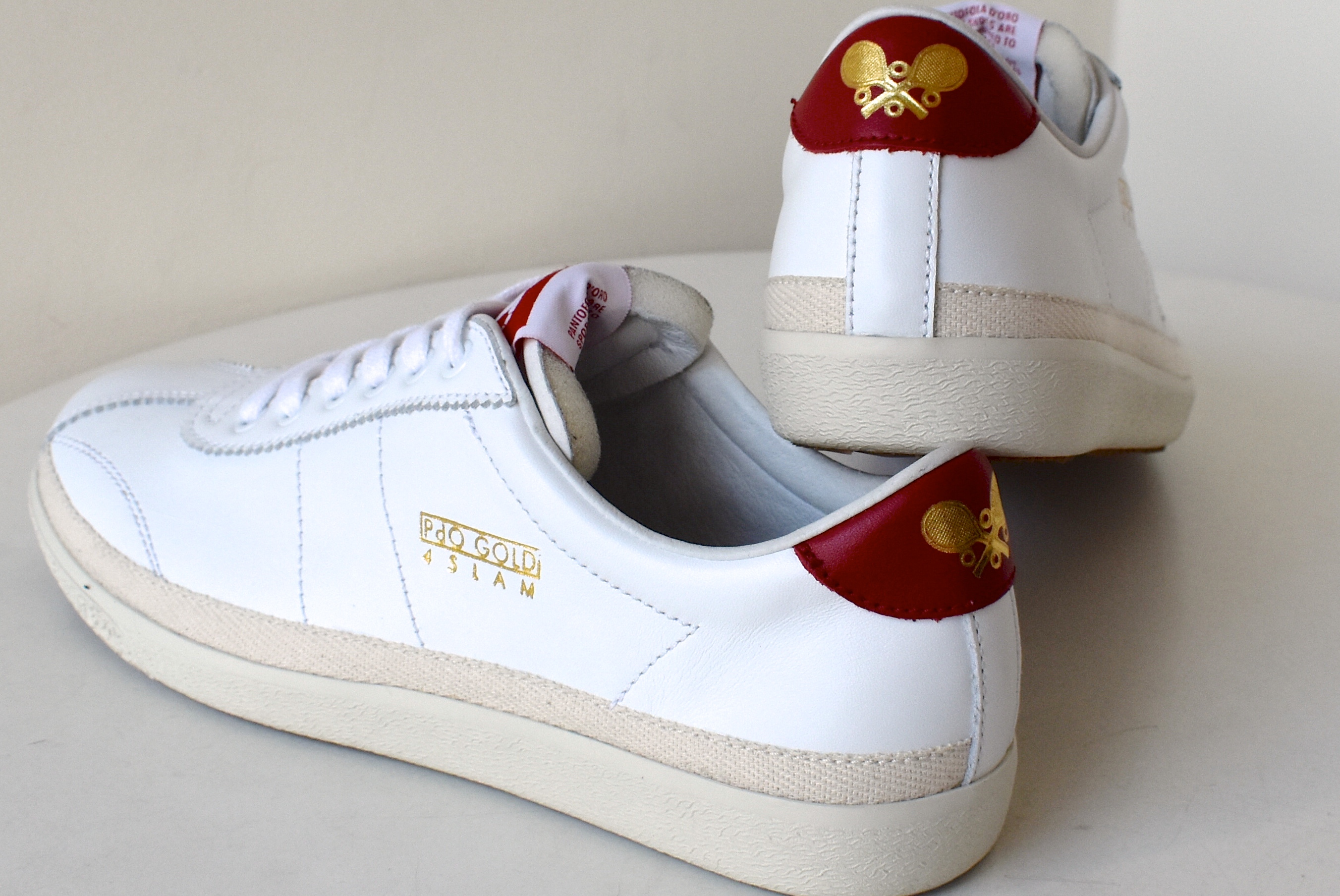 同じくクラシックモデルです。デザインを研ぎ澄まし、よりシンプルになったのが「PG64」。都会的な雰囲気のテニスシューズです。