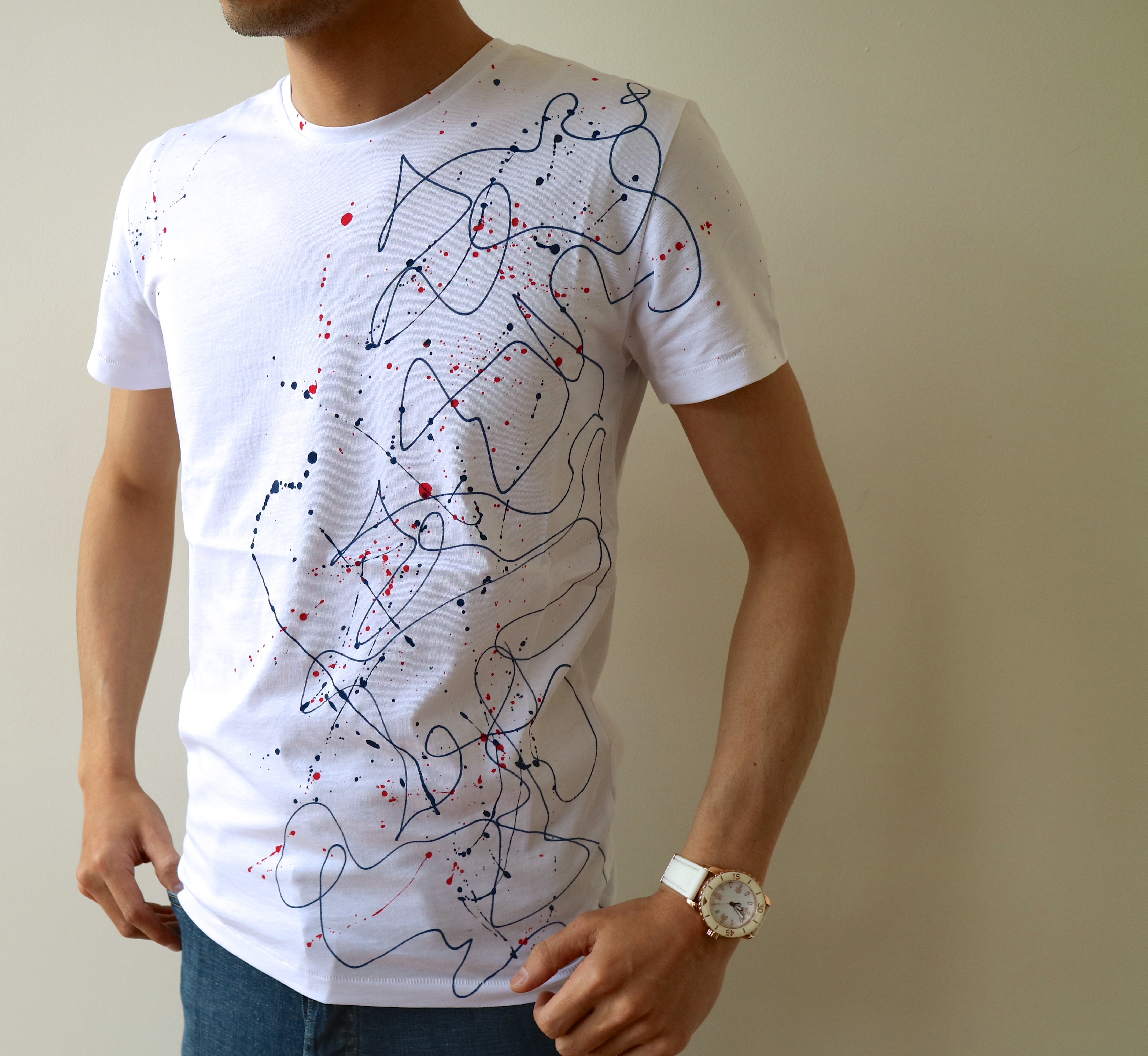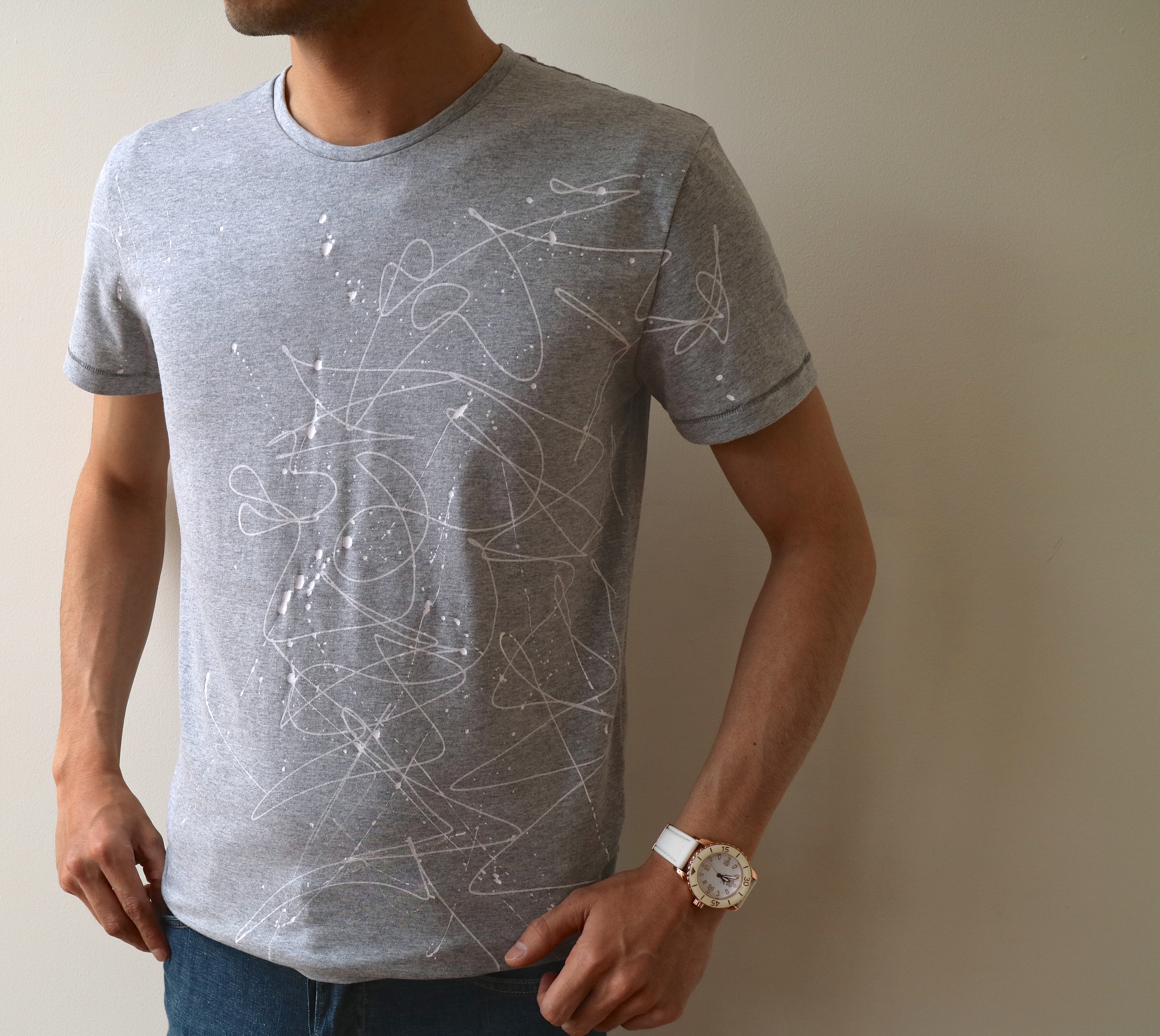 絵の具を無造作に散らしたかのような、アバンギャルドな雰囲気の1枚。無性なまでにお洒落なTシャツを着たい・・という、強迫観念的な思いに駆られていた大学生時代を思い出しました。プリント系となると、やはりデザインに尽きます。そして、デザインは無数にあります。なんだかんだで無地に落ち着いた記憶がありますが、やはりプリント系はいいですね。良いデザインは、問答無用にそそられるものが有ります。