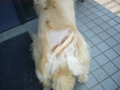 我が家の愛犬シェリーが手術をしました。お尻に卵ほどの腫瘍ができたのです。それが悪性なのかは今、調べてもらっています。それにしても痛々しい姿になって、もっと早く気づいてやれなかったことを、後悔するばかりです。