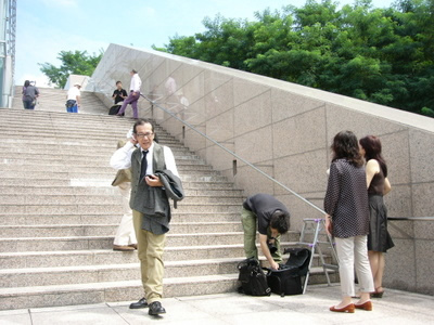 短時間のうちに撮影は終わりましたが、この間、私もスタッフも俳優になって演じなければいけません。最初は硬かった表情も撮影が進んでいくうちに柔らかくなっていきます。また、そこに偶然、居合わせた人たちも興味津々で見てくれますので、どんどん、その気になってきます。前回は、岡崎の観光地での撮影場所(撮影場所はすべて岡崎市内)だっただけに、何の撮影なのか尋ねに来られた方もありました。案外、気分のいいものですね。ただ、今回は暑くて、その余裕が持てなかったのが残念でした。
