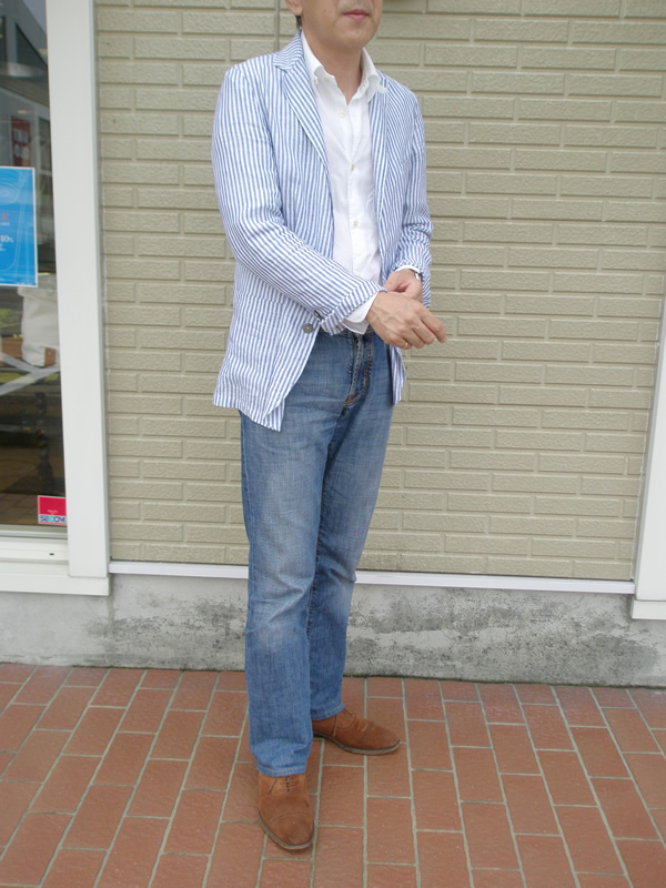 そして、マリオ・ムスカリエッロのシャツジャケットは、リネン100%のストライプ柄を購入。今、店頭で最もよく着ているジャケットです。マリオ・ムスカリエッロは、イタリア、ナポリの由緒あるカミチェリアです。最近、ボリオリのドーバーなどのアンコンストラクションのジャケットが人気を博していますが、シャツ屋が作るシャツジャケットは、圧倒的に柔らかく軽やかです。また同じシャツジャケットでも、肩付けを初め、完成までに6つものハンド工程を経て生まれる マリオ・ムスカリエッロの着心地は、他の追随を許しません。袖の裏地が無い為、半袖を着たときの汗のべたつき感もないし、シワになっても気にならないのも魅力です。