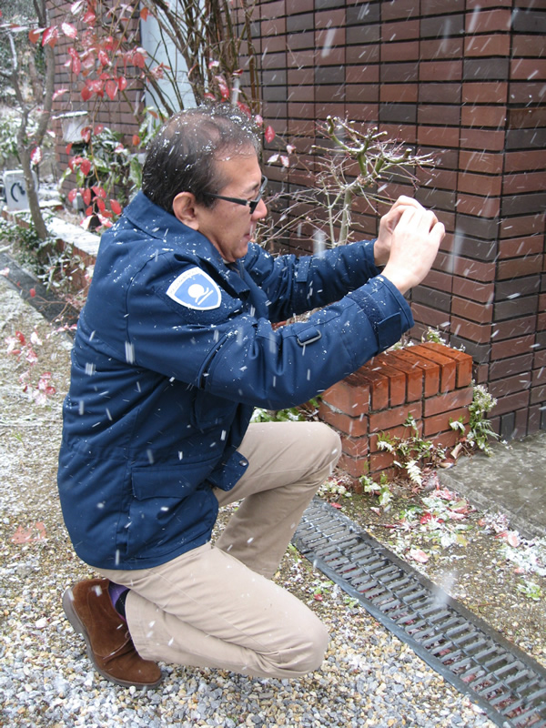 撮影をし始めるとすぐに、大粒の雪が。この日は風も強く、結局、撮影は中止になりました。明日は、大寒です。一年で最も寒い時期。しばらくは、寒さとの戦いです。モデルの店長、風邪を引かないように!