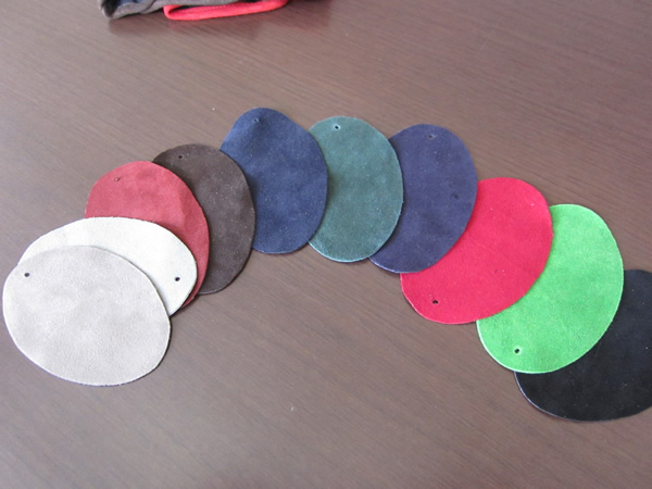 そして、スエード無地は、カラー見本からオーダーができるとの事です。気に入った色を選んでいたら、こんなにも並んでしまいました。