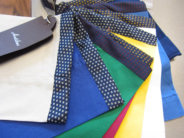 【Finamore】は、相変わらず魅力的な生地が多く、毎年オーダーが増えていきます。赤のシールがオーダーした分です。気になる方は、カラーコピーですが店頭で見ることができます。ただ、くどいようですが来年の春夏物ですので、先は長いですよ。