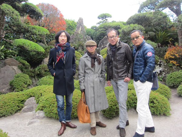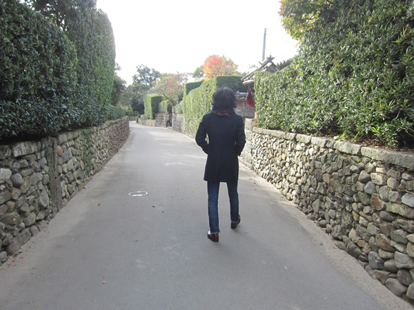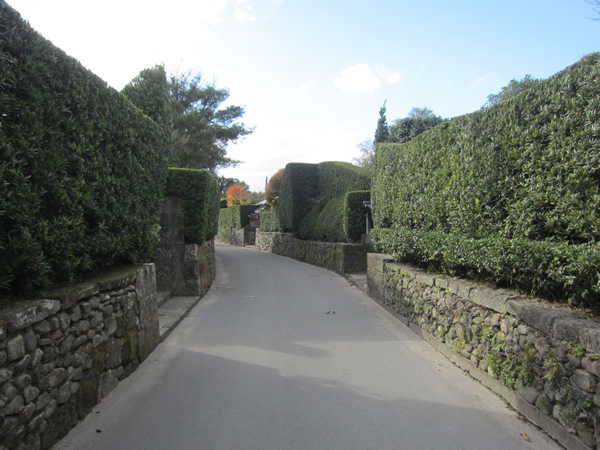 鹿児島空港に到着した際の3人の写真は、前回お見せいたしました。最初に向かったのは、薩摩の小京都といわれる知覧の武家屋敷群。生け垣と石垣が美しい小路の両側に武家屋敷が続きます。