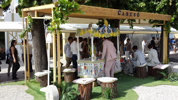 メインストリートの横でなにやら怪しげな?屋台は、CARUSO/カルーゾ。35度以上ある暑さの中で、ピンクのスーツは見た目には涼しげです。この秋よりエージェントが代わり、展開が難しくなるかと心配しておりましたが、CARUSO社から直接お話を頂き、どうやら継続できそうです。もちろん、大好評だったス・ミズーラも秋に開催予定です。