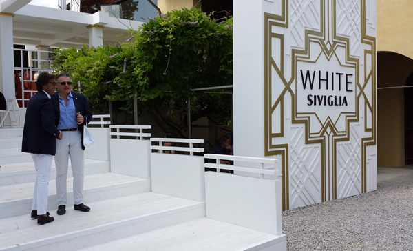 そのすぐ近くには、SIVIGLIA/シヴィリアが。ネイビーのジャケットにホワイトパンツの爽やかなお二人。背景とも合って、とても素敵でした。