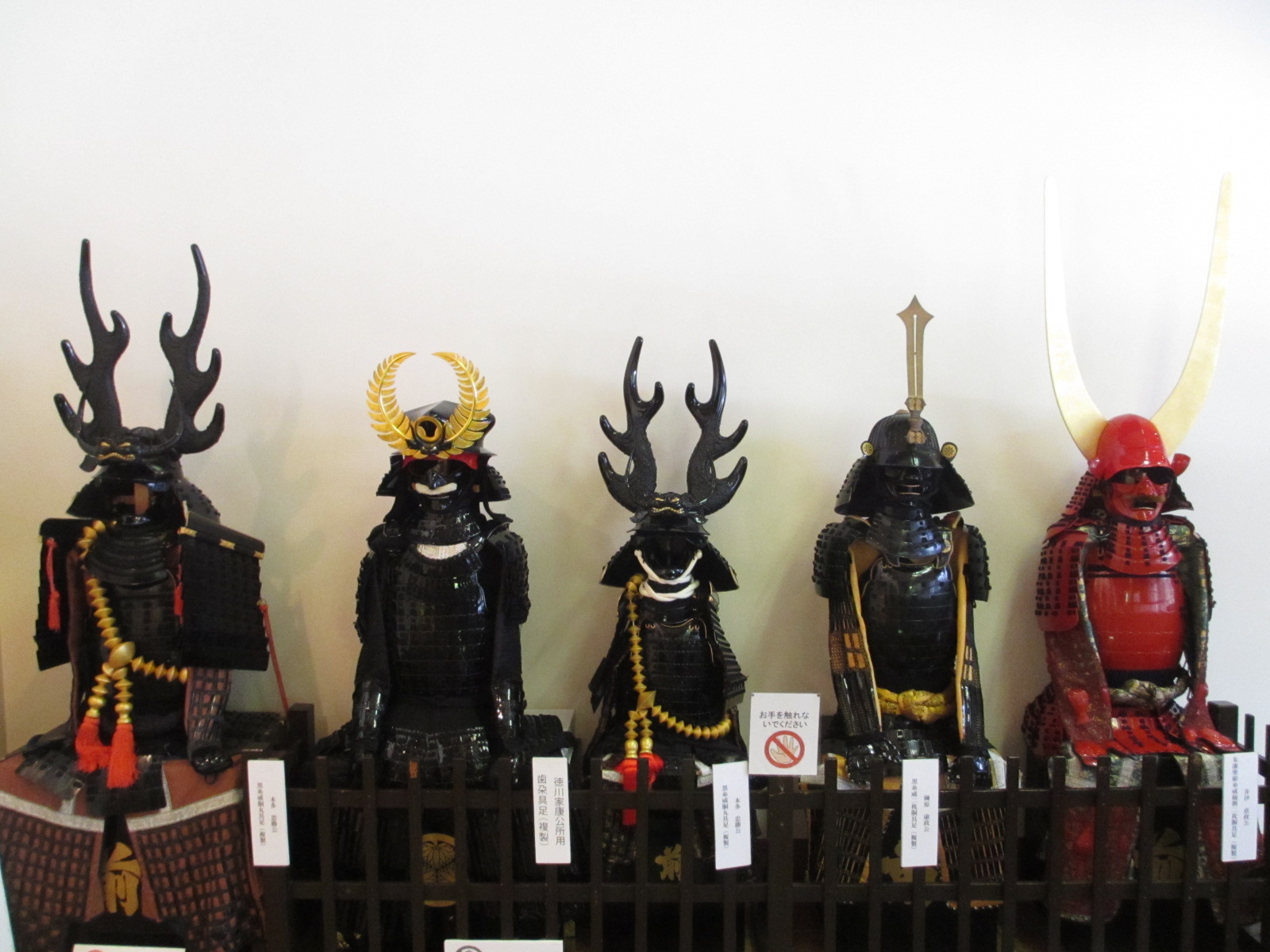 訪問されたのは、この方々。右から赤備えの井伊さん、榊原さん...そんな訳ありません。こちらは徳川家康と四天王の甲冑です。本当は二人の素敵な女性です。 まだ彼女たちの許可を取っておりませんので、写真掲載はできません。許可が下りない場合もありますので、ご了承ください。