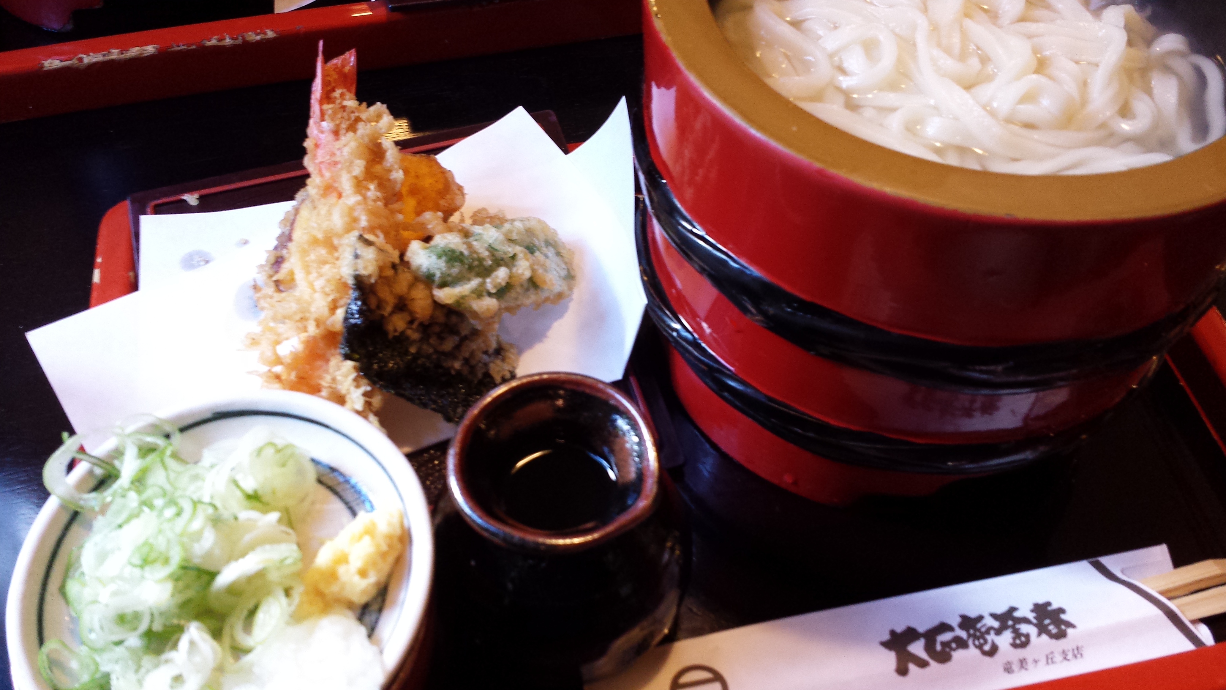 昼食に選んだのが、"大正庵釜春 竜美丘店"。地元に愛されているうどん屋さんで、車好きの大将とは20年以上のお付き合いです。日本テレビの「秘密のケンミンSHOW」にも選ばれ、話題 のスポットとして紹介もされていました。うどんの量は、かなり多く、か弱い女性には多すぎるかなと心配しましたが、お二人とも完食でした。口に合って、良 かったです!