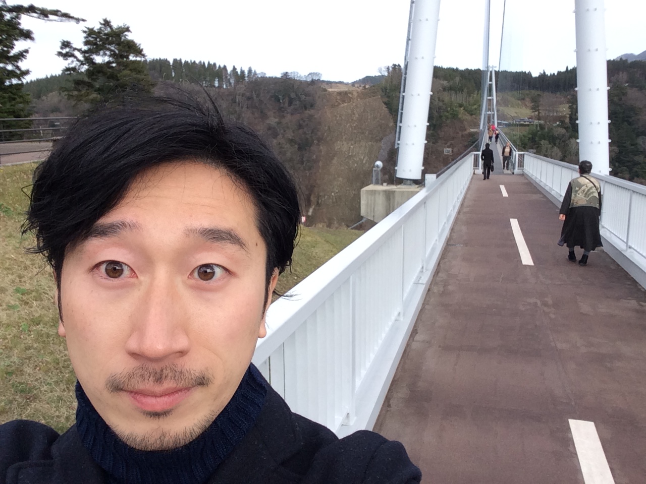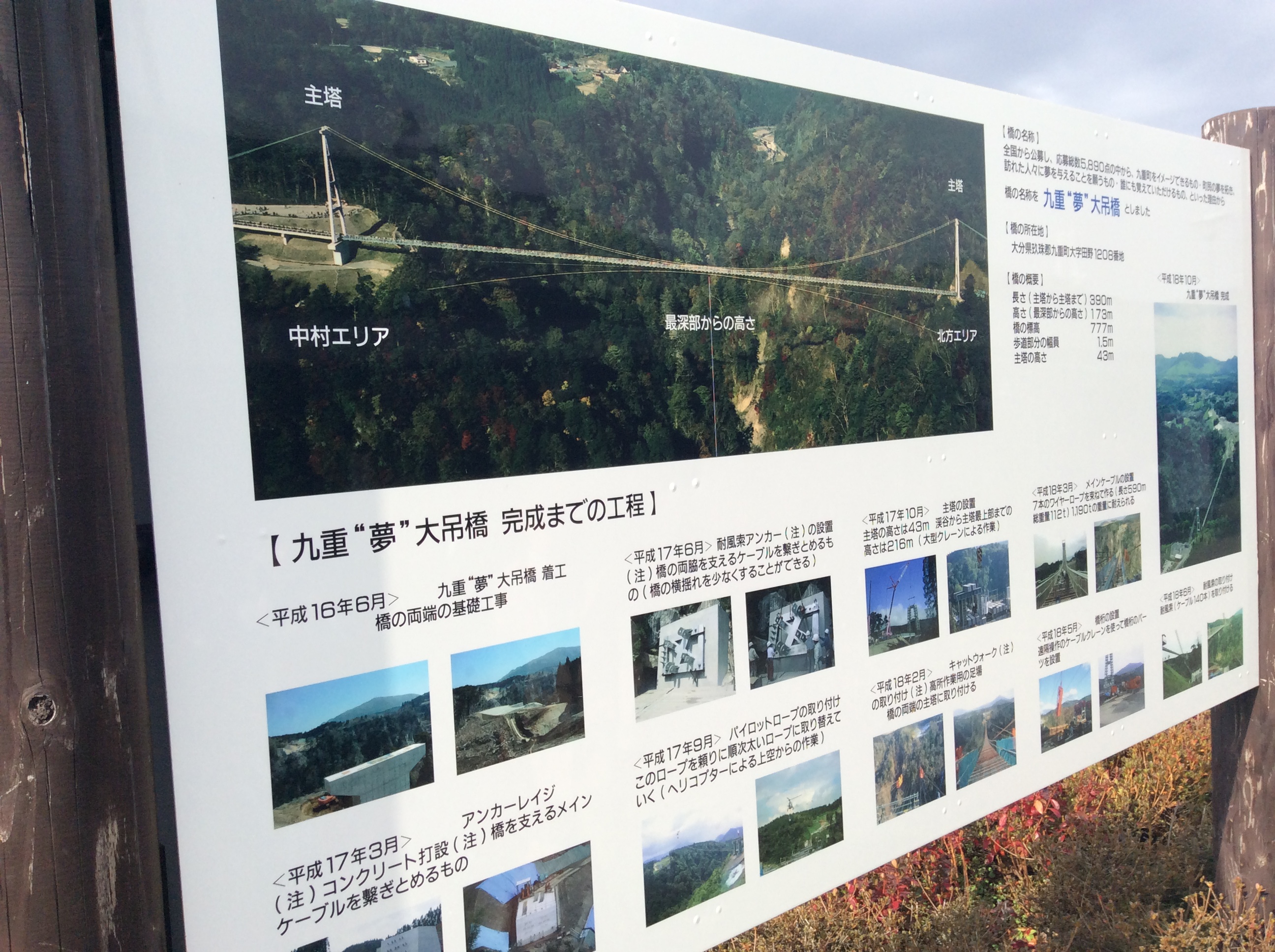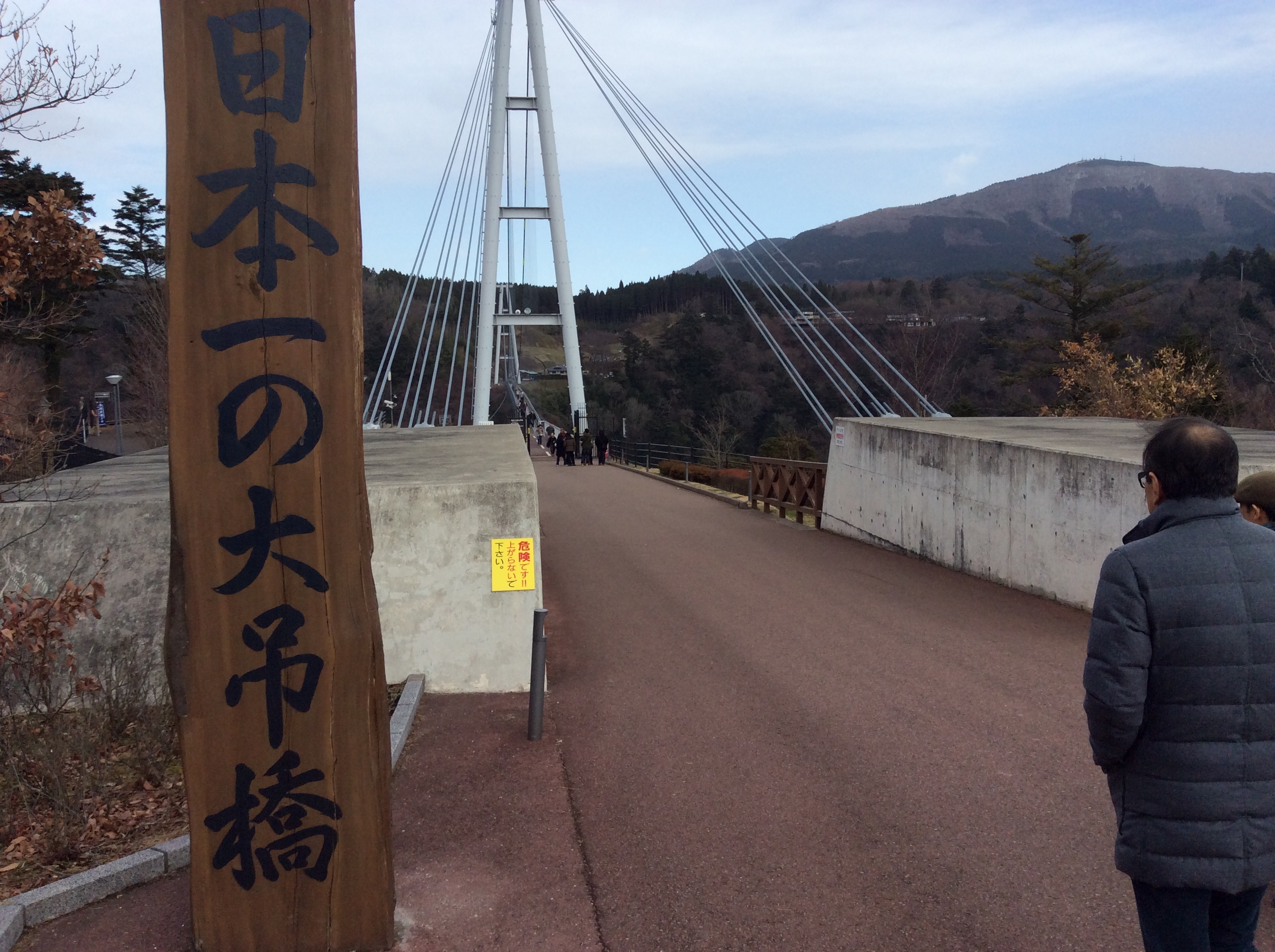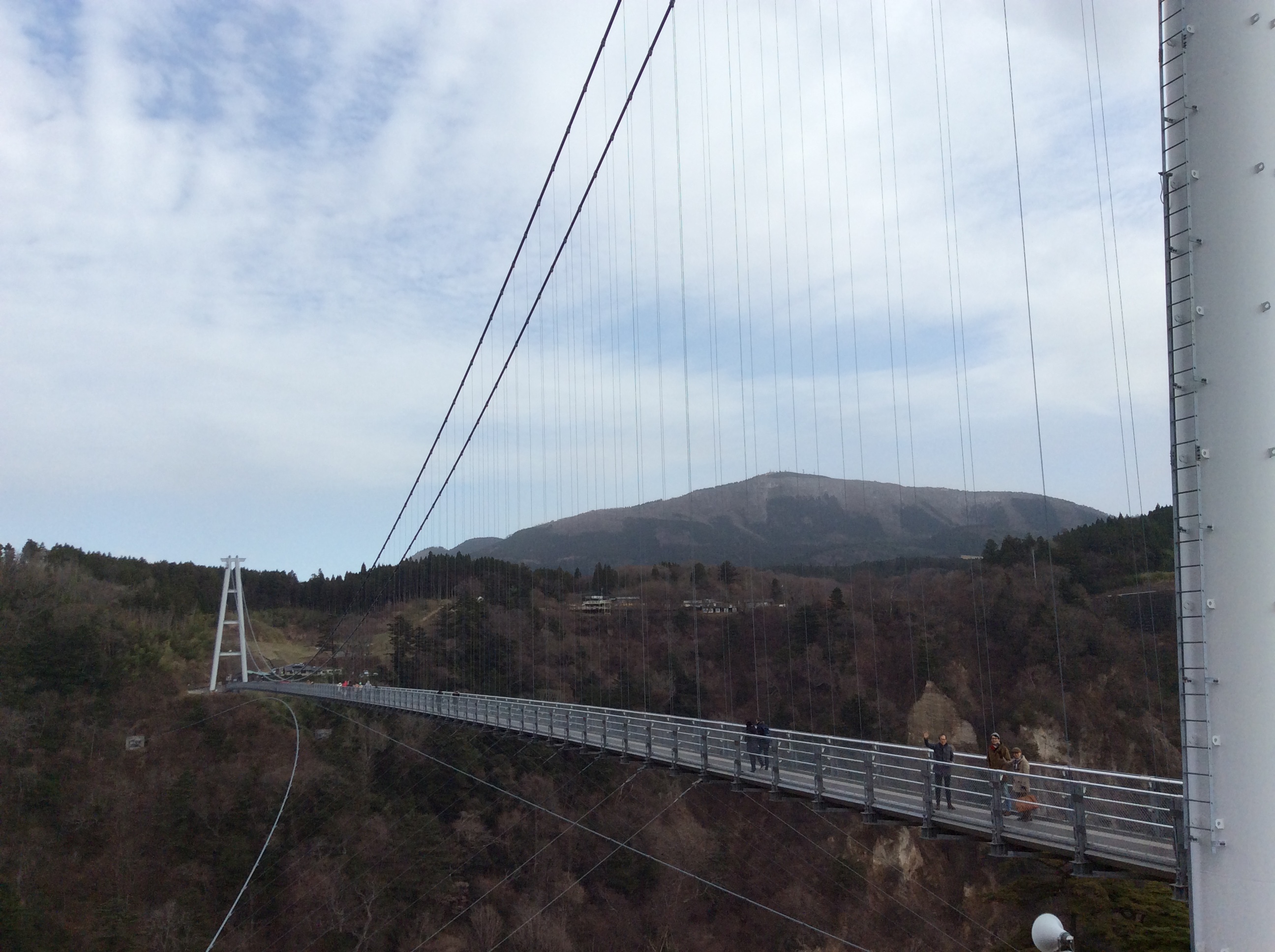 途中、立ち寄ったのが、九重"夢"大吊り橋。長さ390m、高さ173m、幅1.5mの日本一の人道大吊橋です。