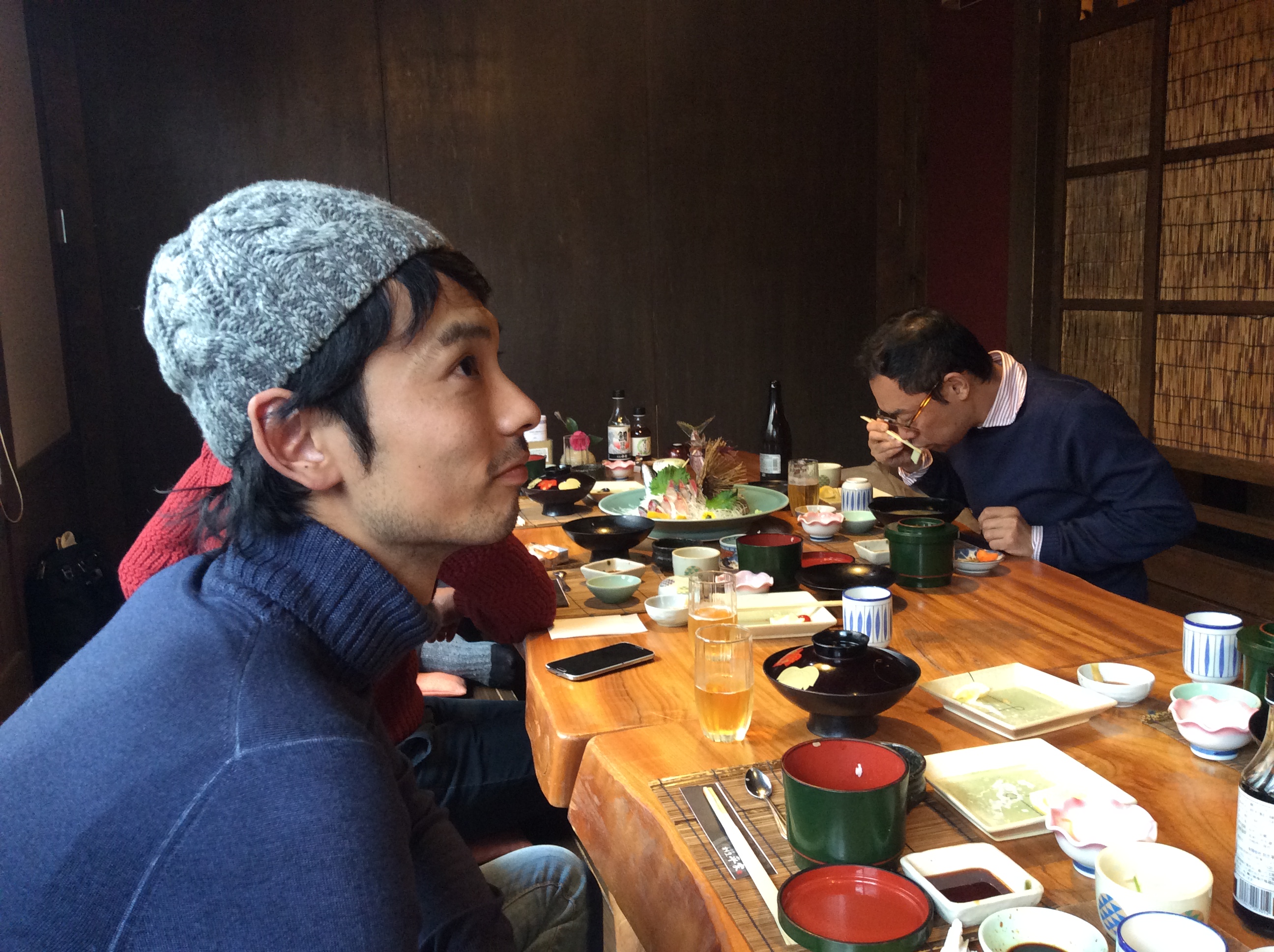 三河湾に面した一色出身のマスヤマ。あっという間に完食。そういえば、タカイは焼津が故郷。二人とも海が近いだけに、魚は身近な食材です。眠りから覚めたナグラさんは、食欲旺盛。欲の深いお方です。
