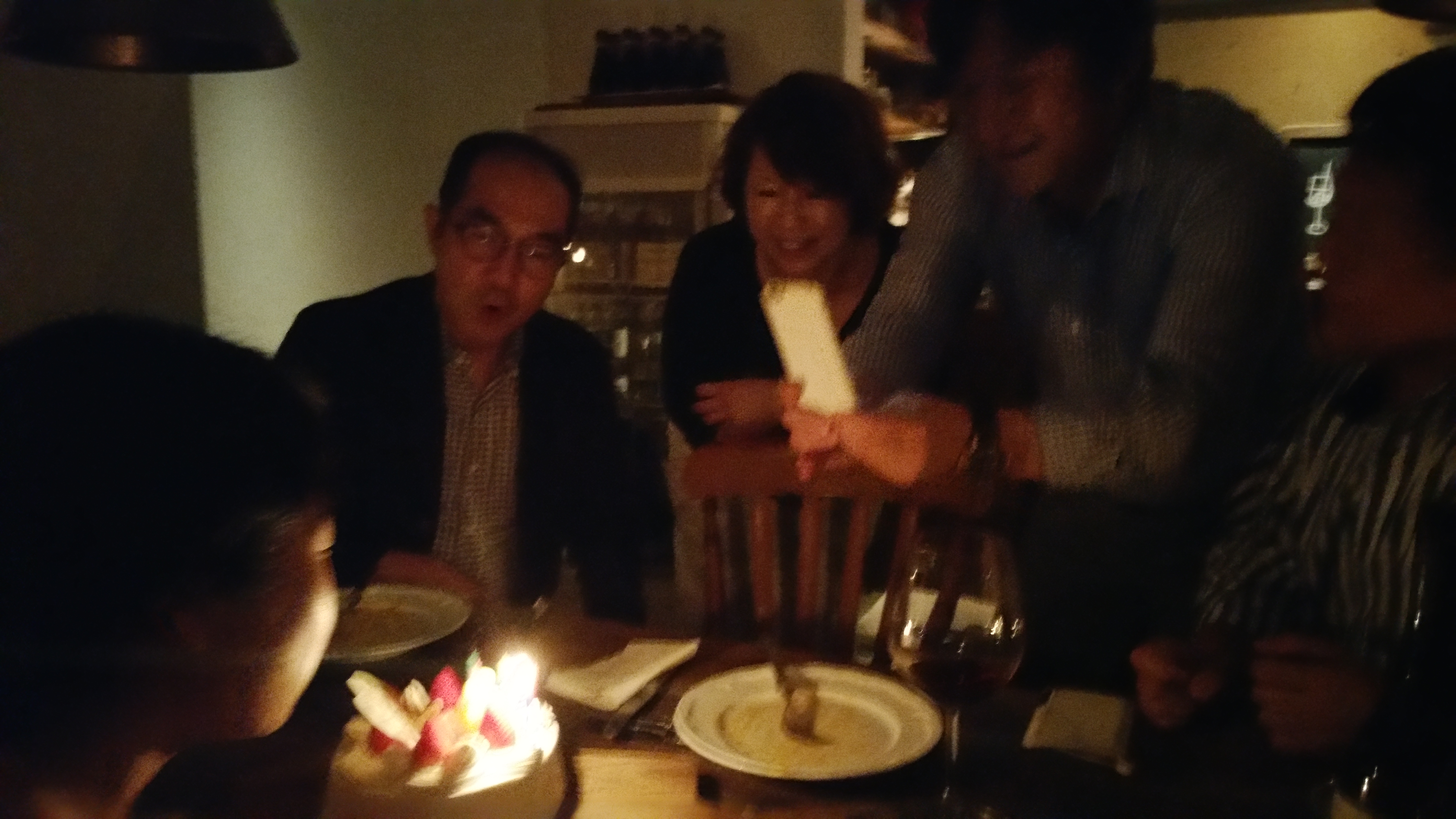 この日、レッスンに参加できなかった仲間も集合です。連夜の飲み会続きで、お疲れのK氏。夜が更ける頃に他の場所から、お祝いに駆けつけてきてくれました。