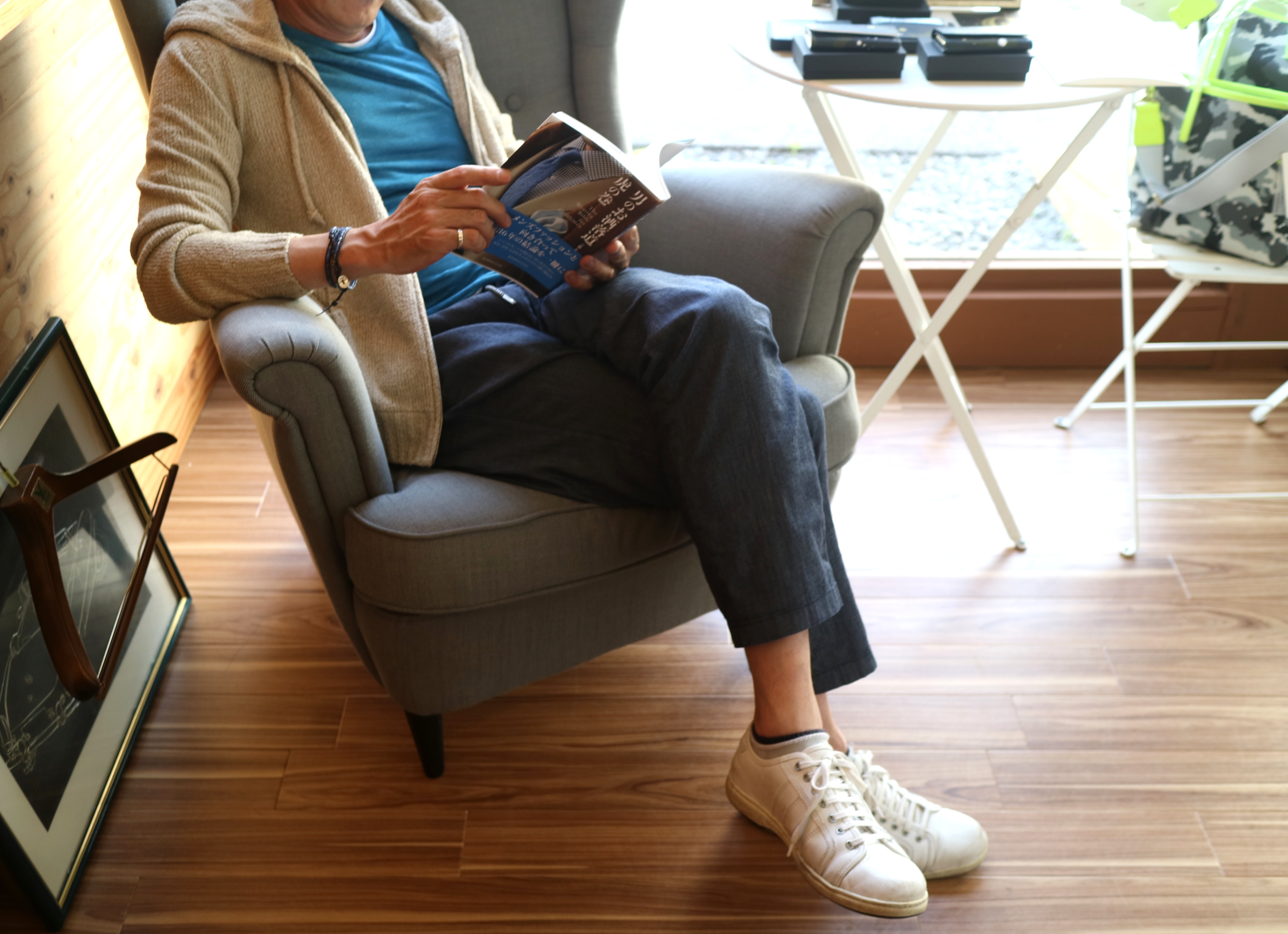 また、このアングル?って言わないでくださいね。本日、ご案内したいのは、洋服ではありません。手に持った本に注目してください。