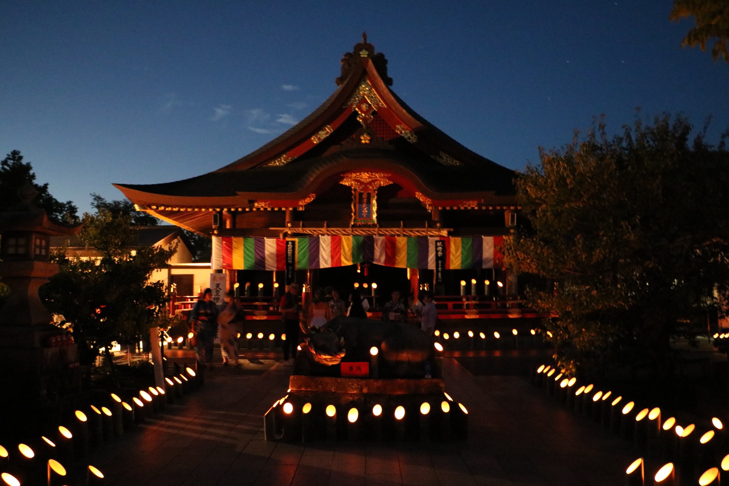 奉納が終わった頃には、もう辺りは真っ暗。人影も少なくなり、境内はさらに幻想的な空間を作り出します。