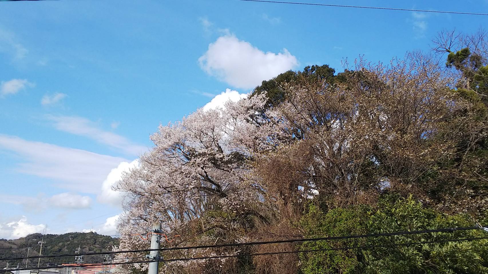 我が家の玄関を開けると、のどかな風景が広がります。徐(しず)かなること林のごとくと、花冷えの風の強い日は"孫子"の教えに従ったほうが良さそうです。