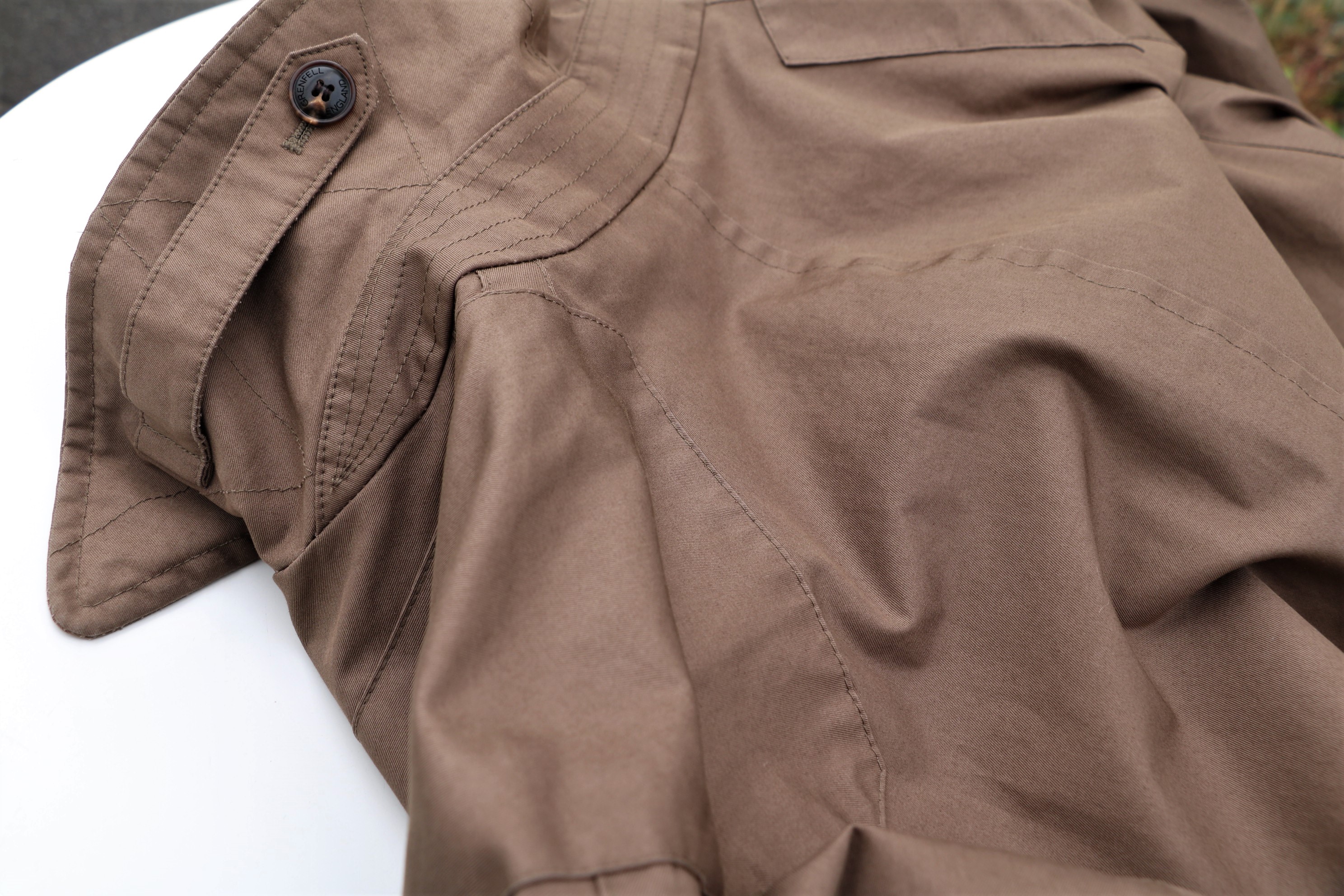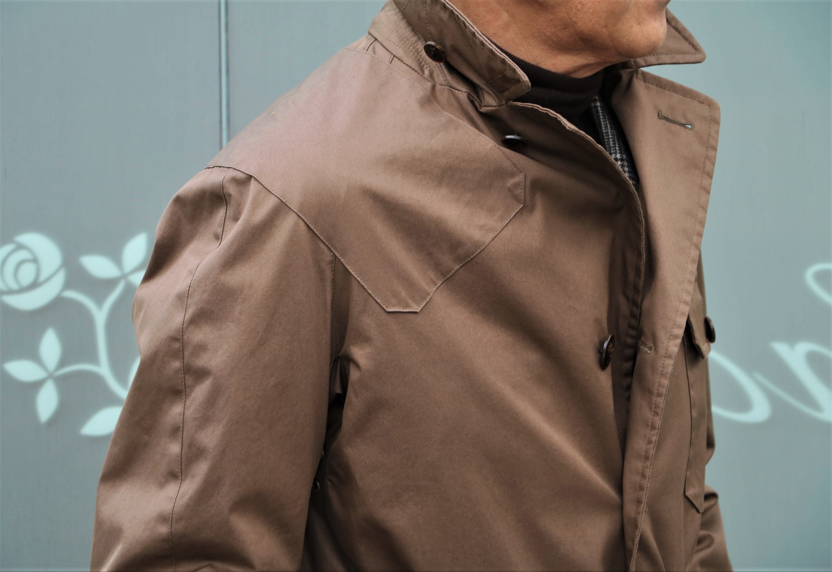 ハンティングジャケットの中でも銃による狩猟用として開発されたシューティングジャケット。両肩にガンパッチが付くのが特徴です。スロートタブの付いた襟を立てれば、逞しくも静かなるオトコの内面が見え隠れする...ような気がします。