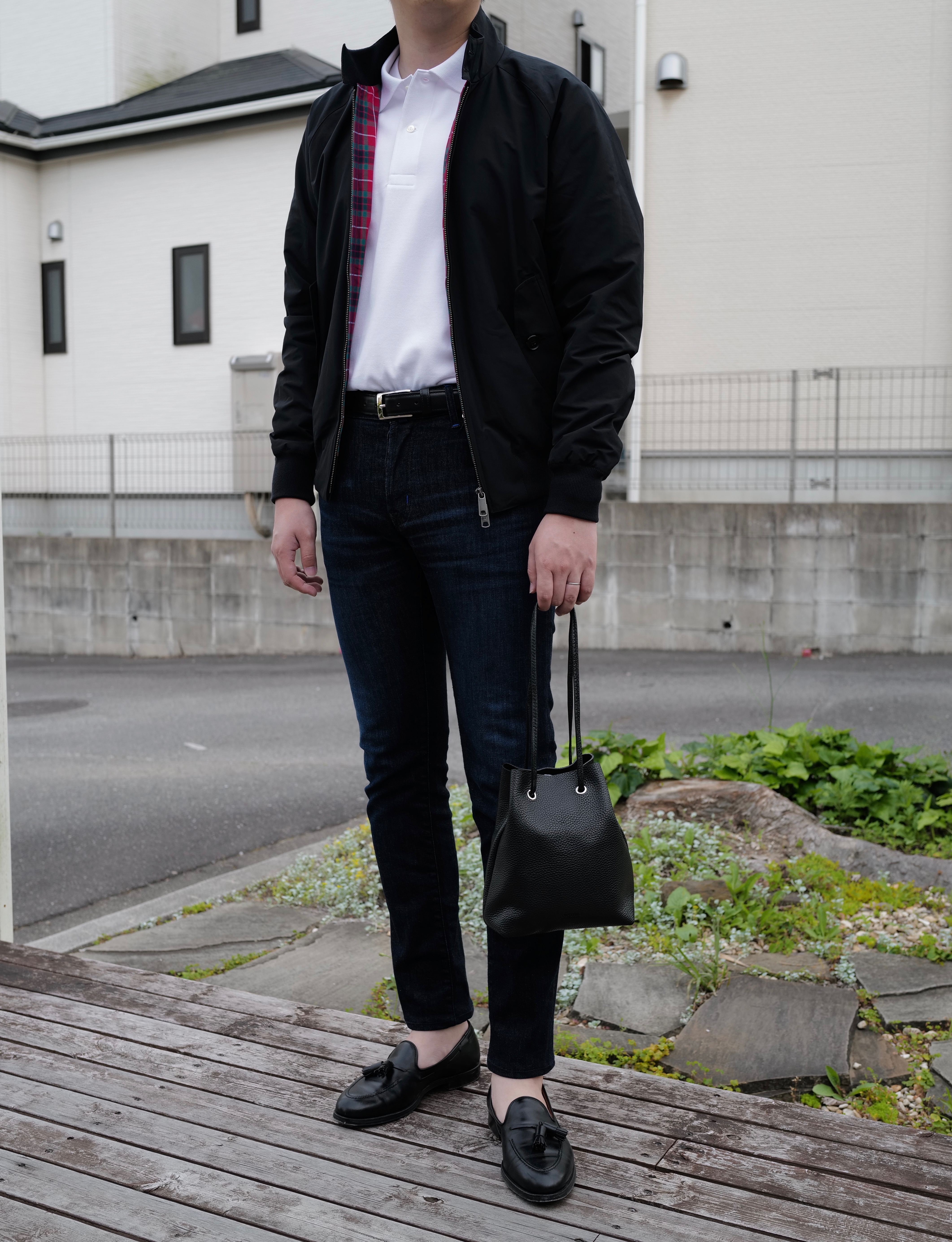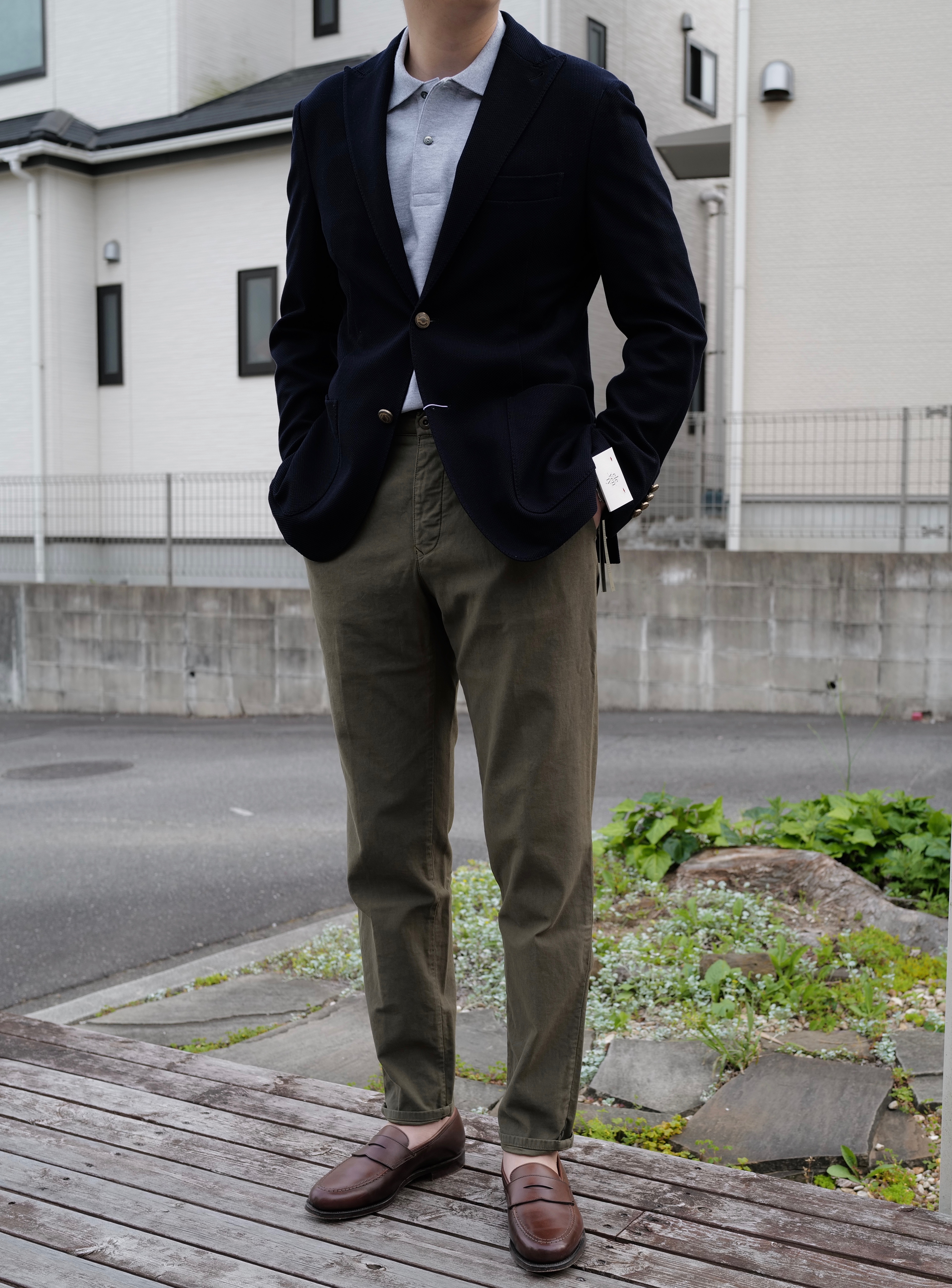 きちんと感のあるインコテックスのスラックスに合わせて、カジュアル過ぎないリラックススタイルに仕上げました。