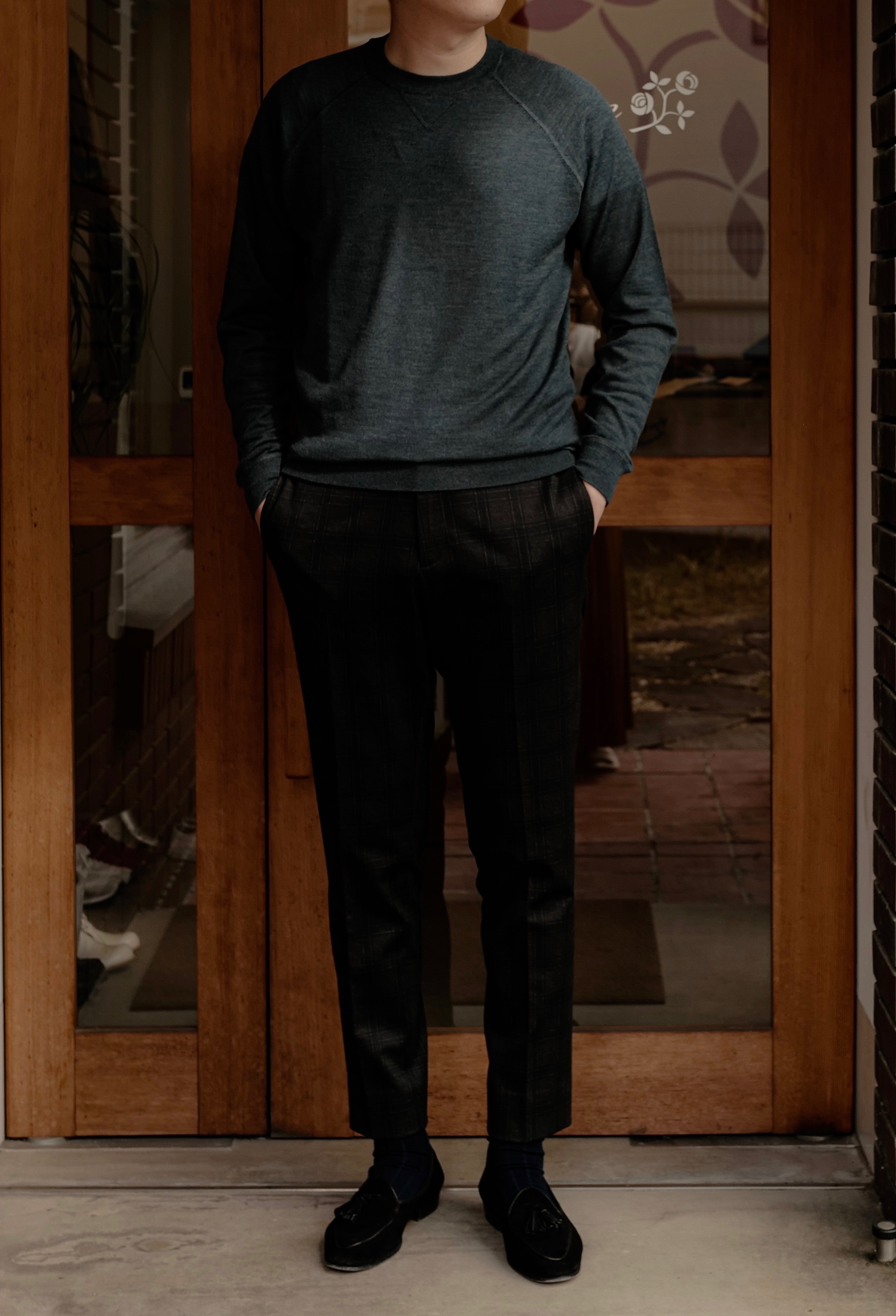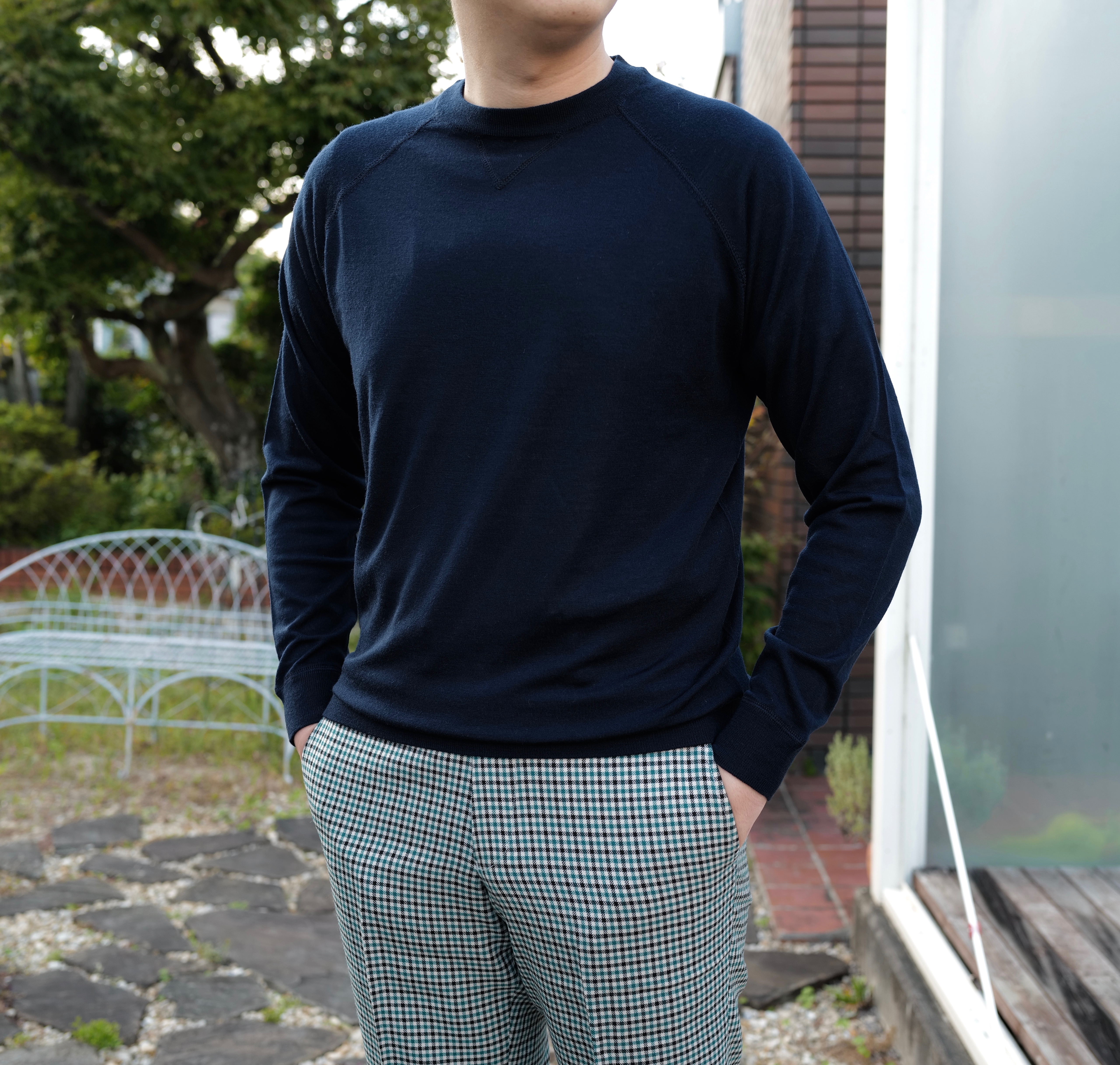 ご用意したのは、所謂、スウェット型のニットになります。大人の休日にピッタリな上品さと、程よいカジュアル感が魅力的ではないでしょうか。