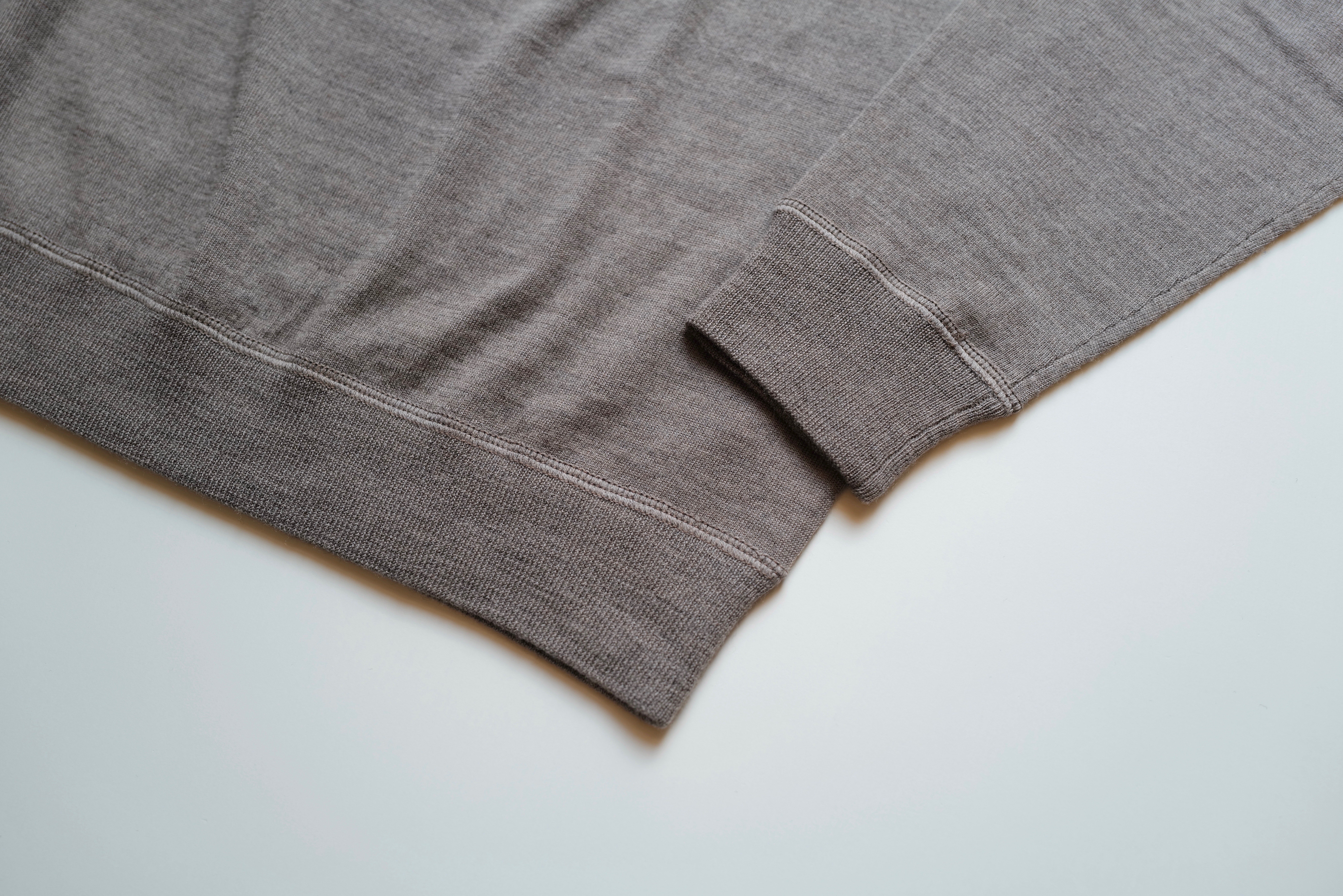 袖や裾の部分は、少し厚みを持たせた生地にしているので、生地感もメリハリがつき、耐久性が高くなるのでダラダラになってしまうこともないと思います。