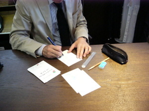 この夏、ネクタイをするという決め事の他に、もう一つ、決めたことがあるのです。それは何かと言いますと、この春以降、お買い上げになられたお客様に暑中見舞いがてら礼状を書くと言うことです。今までもダイレクトメールの宛名は手書きにしていましたが、今回は更に文面も手書きにしよう。そう決めたのです。