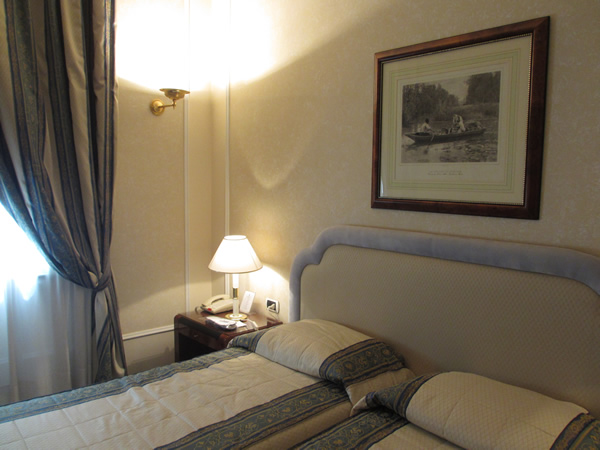 部屋の調度品もクラシックで落ち着いた雰囲気の部屋。ただバスタブ付きの部屋を頼んだはずなのに、シャワーしかなくて残念。ただフロントの女性スタッフの親切な対応でマイナス面も帳消しです。この時期のフィレンツェのホテル代はかなり高くなります。ひょっとしてモナコで泊まったフェアモント モンテカルロより高かったような・・・。
