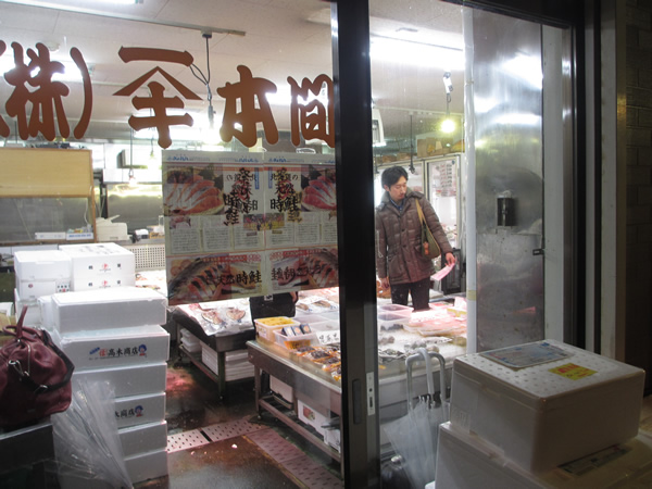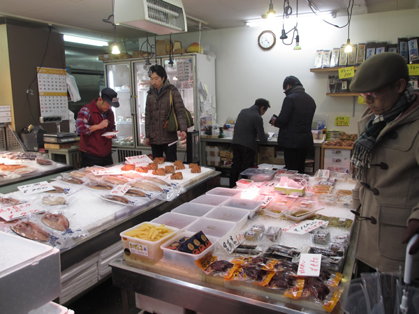 ここ小樽の海産物を扱う高木商店さん。いざ買い物となると、タカイは焼津出身だけあって、さすがに動きは早く、その眼差しは真剣そのものです。