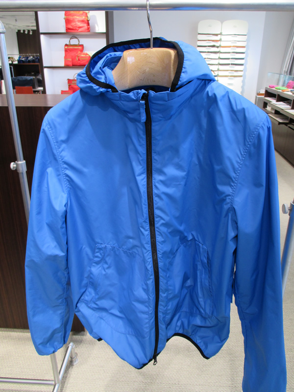 そして、このきれいなブルーに引き寄せられて早々と自分用にオーダーしてしまったウインドウブレーカー(オレンジもあります)。愛犬シェリーの散歩用として、ウインドウブレーカーは欠かせません。丁度、今使っているものが、くたびれてきておりますので、良いタイミングです。着る時期も長いので、コストパフォーマンスはとても高いんです。