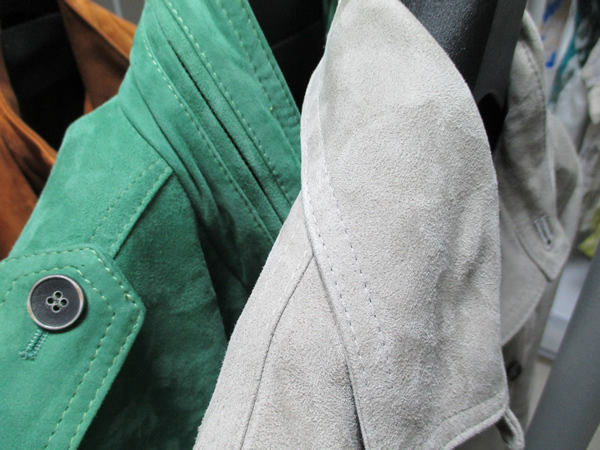 この生地もいいですね。別珍にプリントすることで、深みのある表情に。ダブルのジャケットが雰囲気でしょうか。