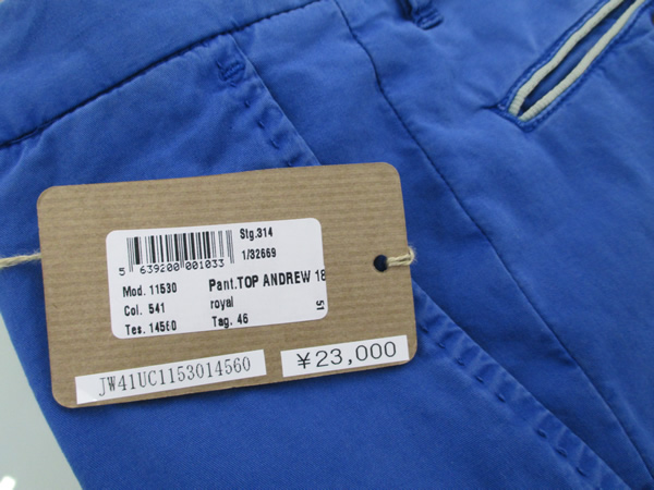 今回、初来日のオーナーであるジャコモ氏一押しのジャガードパンツ。もちろんオーダーさせていただきました。
