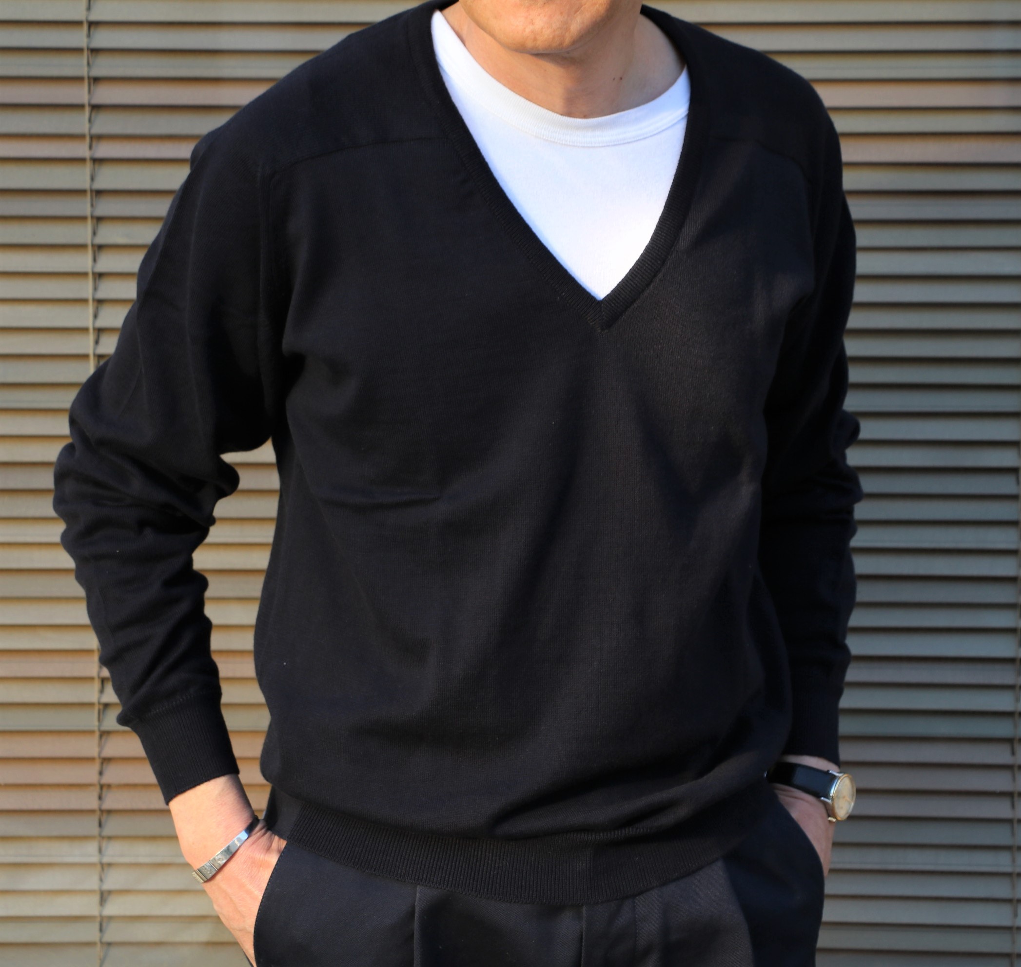 映画「007/スカイフォール」上海のシーンでジャームズボンドがタイドアップスタイルの上からジョンスメドレーのニットを着用しているシーンがあるのですが、それがめちゃくちゃ渋いんです。オンオフ兼用で使えて、オールシーズンの着用も問題ありません。